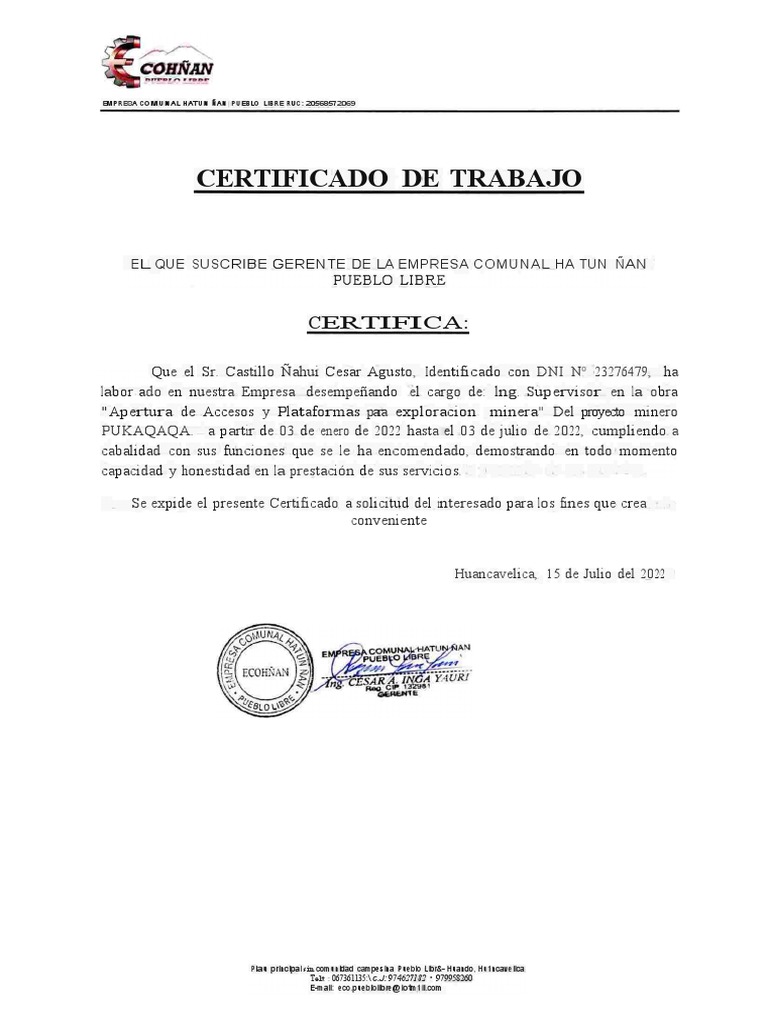 CERTIFICADO DE TRABAJO