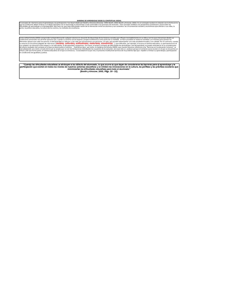 del efecto mediador del contexto en el que se desenvuelve el alumno. Podríamos decir, por tanto, en palabras de Echeita (2004), que cuando hacemos referencia a las “barreras en la educación inclusiva”, se