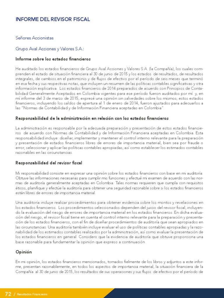 He auditado los estados financieros de Grupo Aval Acciones y Valores S.A. (la Compañía), los cuales com-