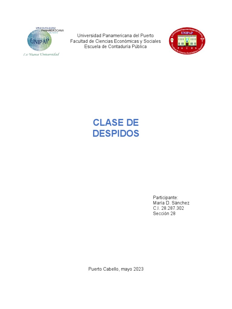 Realizar un informe sobre las clases de despido, despido justificado,
