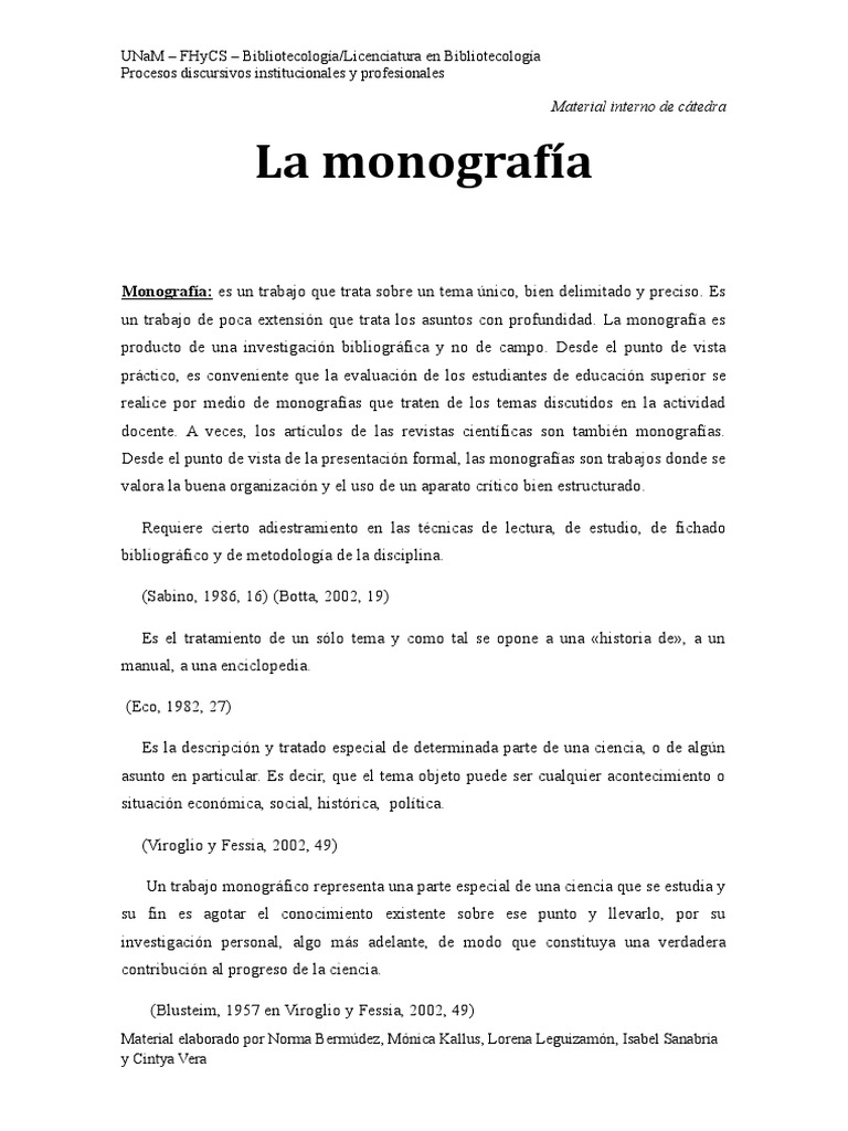 un trabajo de poca extensión que trata los asuntos con profundidad. La monografía es