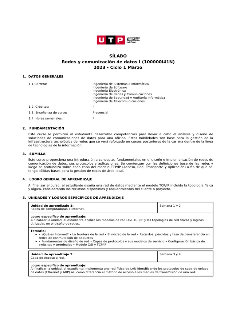 Redes y comunicación de datos I (100000I41N)