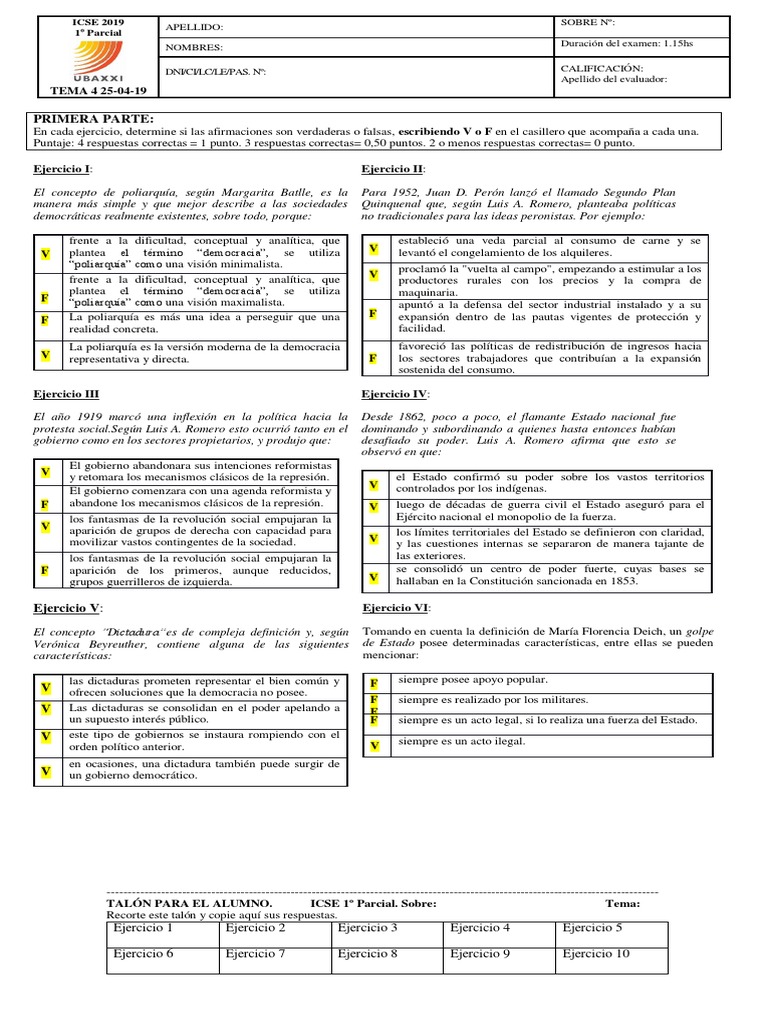 TALÓN PARA EL ALUMNO. ICSE 1º Parcial. Sobre: Tema: