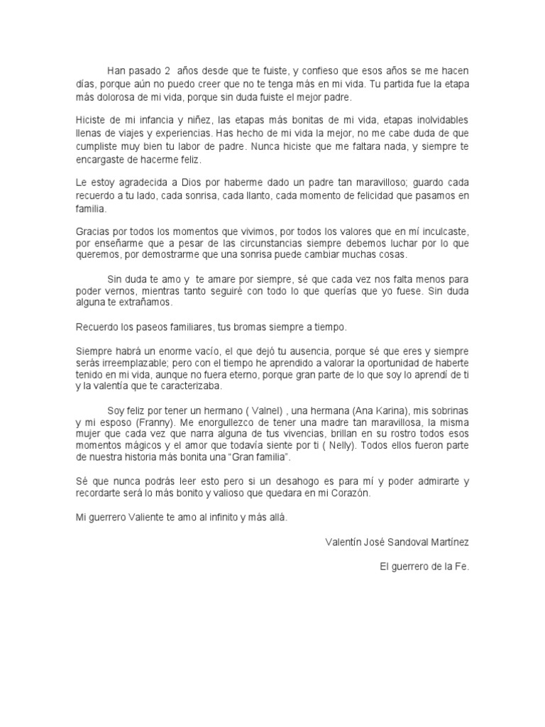 más dolorosa de mi vida, porque sin duda fuiste el mejor padre.