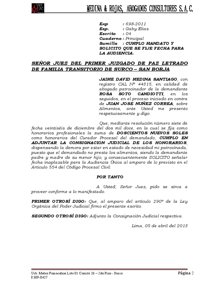 ADJUNTAR LA CONSIGNACION JUDICIAL DE LOS HONORARIOS,