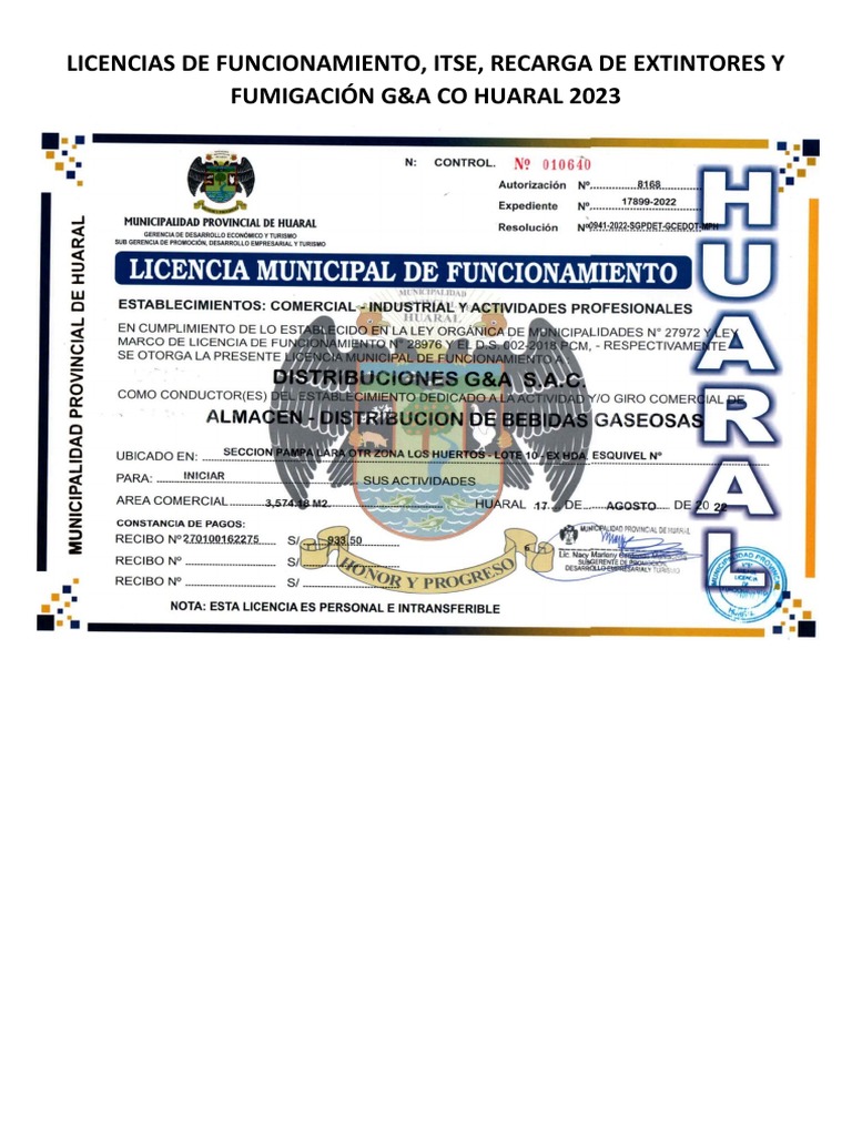 LICENCIAS DE FUNCIONAMIENTO, ITSE, RECARGA DE EXTINTORES Y