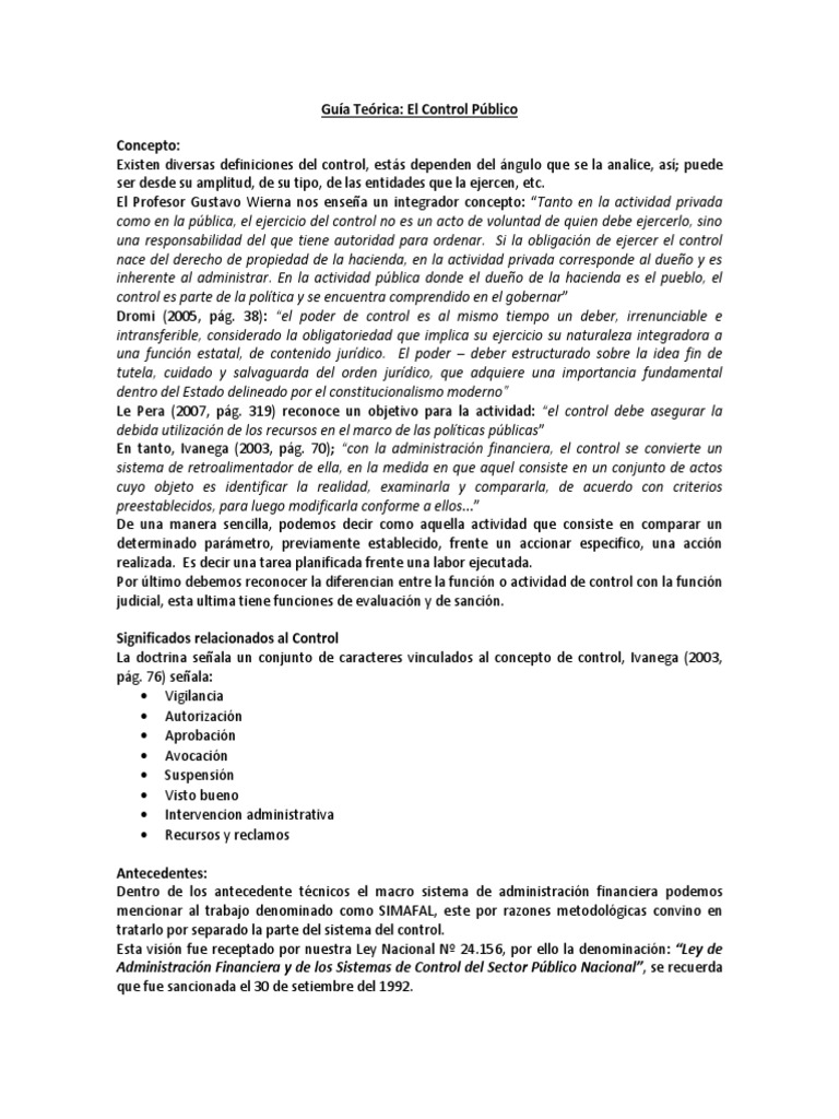 - Wierna, Gustavo Enrique. El Control Público. Guía de Estudios de Contabilidad Pública.