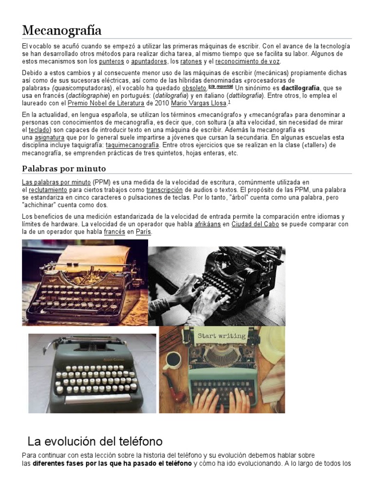 el teclado) son capaces de introducir texto en una máquina de escribir. Además la mecanografía es