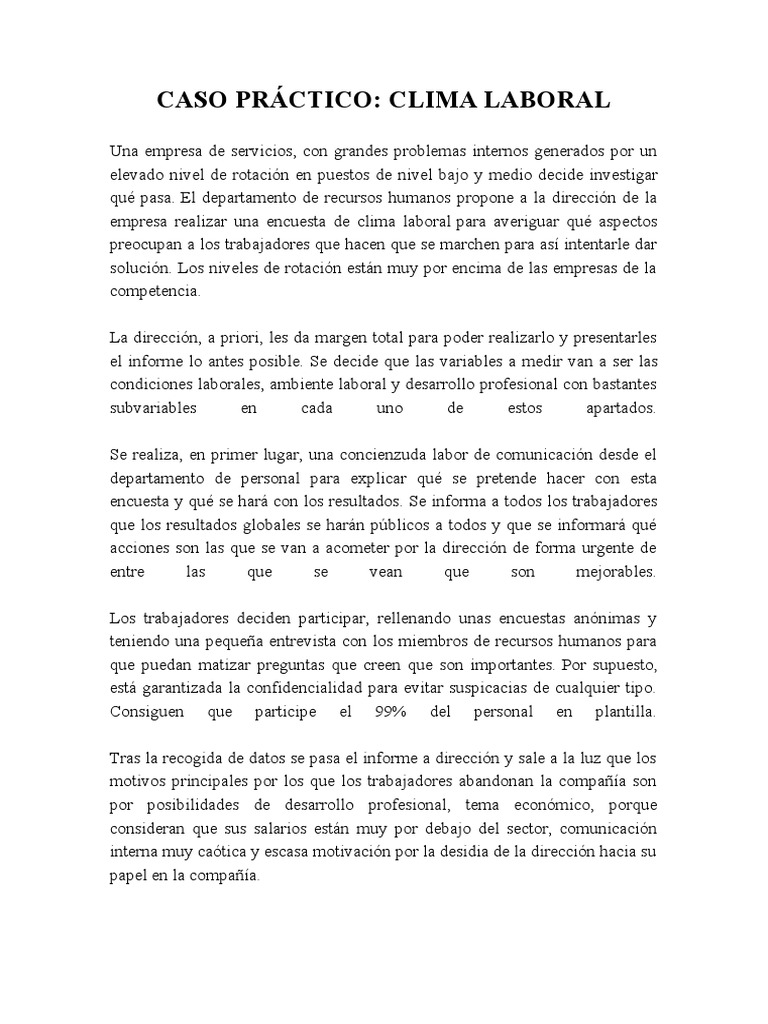 CASO PRÁCTICO: CLIMA LABORAL