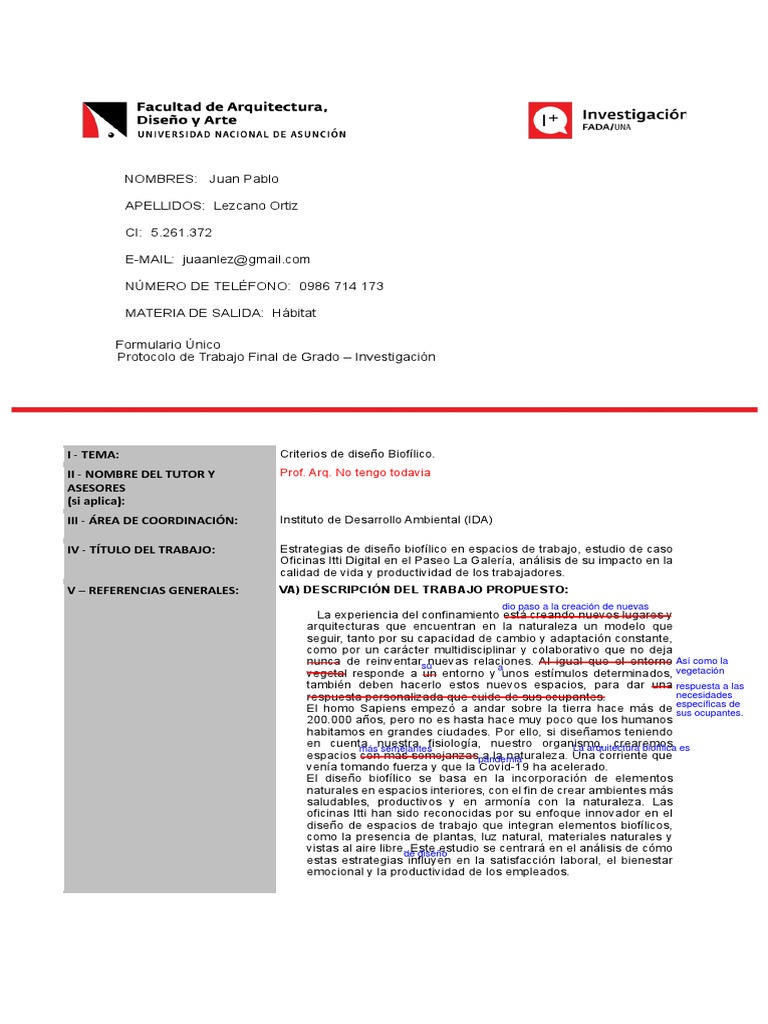 IV - TÍTULO DEL TRABAJO: Estrategias de diseño biofílico en espacios de trabajo, estudio de caso