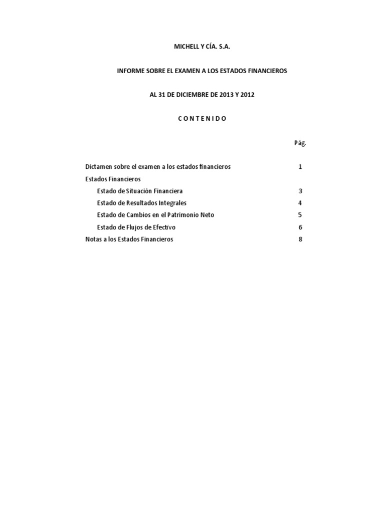 Hemos auditado los estados financieros adjuntos de MICHELL Y CÍA. S.A., que