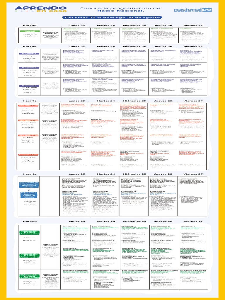 Inicial Primaria ([Link], 2.° y [Link] Primaria (4.°, 5.° y 6.° Secundaria ([Link] y 2.° Secundaria ([Link], 4.° y 5.°