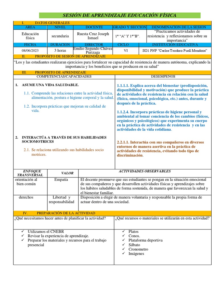 SESIÓN DE APRENDIZAJE EDUCACIÓN FÍSICA