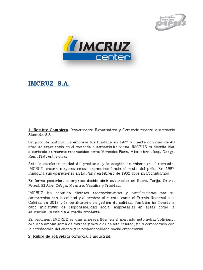En resumen, IMCRUZ es una empresa líder en el mercado automotriz boliviano,