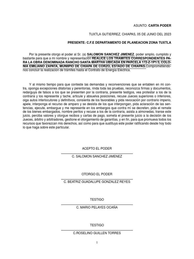 Por la presente otorgo el poder al Sr. (a) SALOMON SANCHEZ JIMENEZ, poder amplio, cumplido y