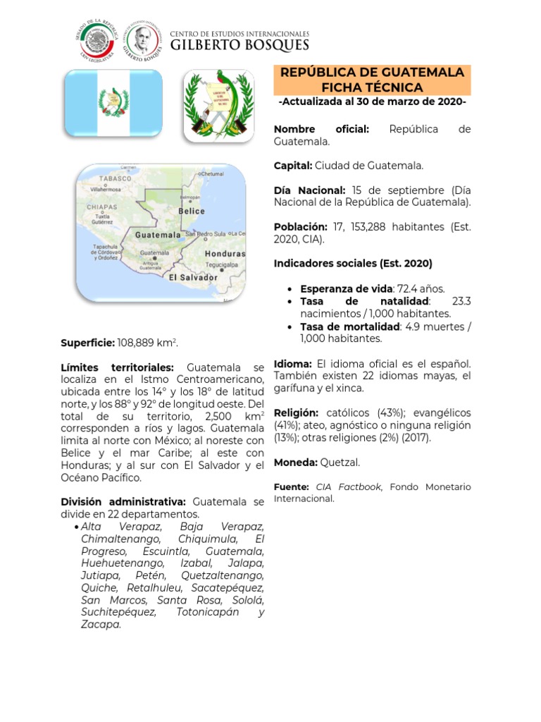 22 CIA The World Factbook. Guatemala. 15 de marzo de 2020. Consultado el 30 de marzo de 2020,