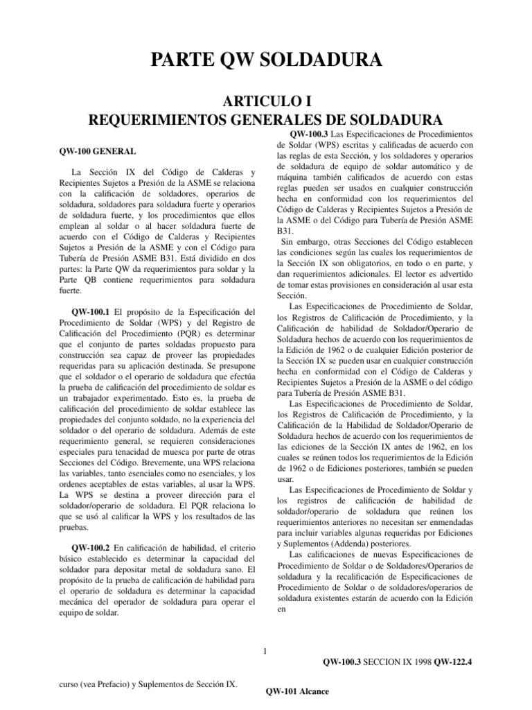 QW-100.3 SECCION IX 1998 QW-122.4