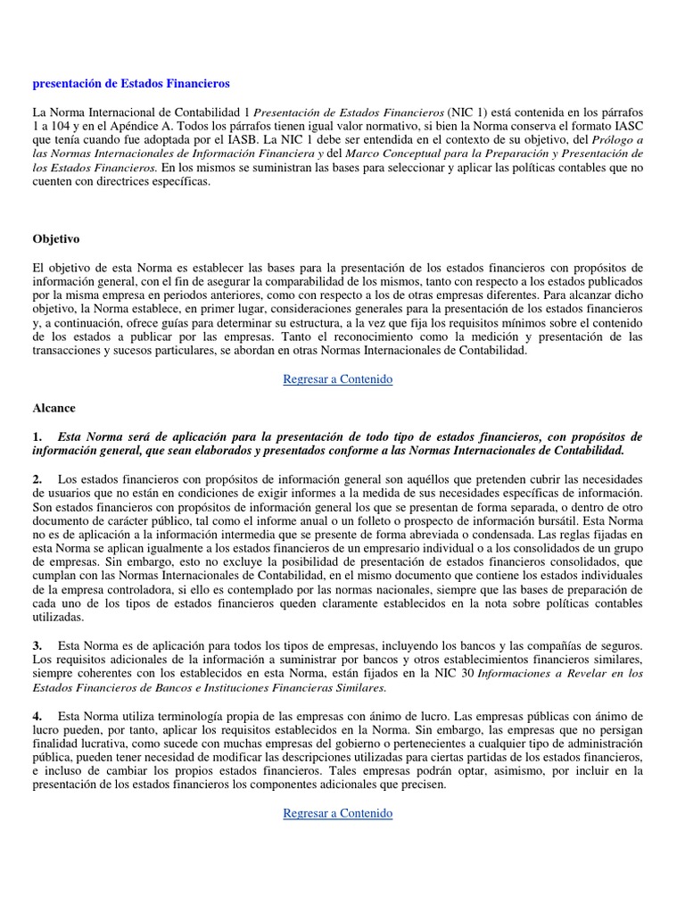 La Norma Internacional de Contabilidad 1 Presentación de Estados Financieros (NIC 1) está contenida en los párrafos