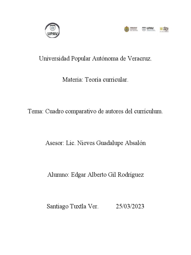 Tema: Cuadro comparativo de autores del currículum.