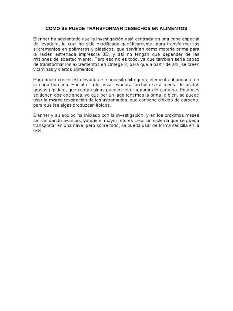 COMO SE PUEDE TRANSFORMAR DESECHOS EN ALIMENTOS