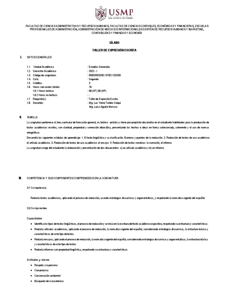 1.7. Requisito(s) : Taller de Expresión Escrita