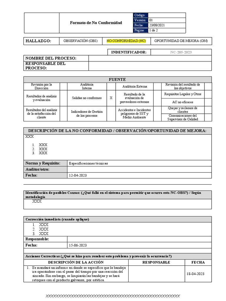 Formato de No Conformidad
