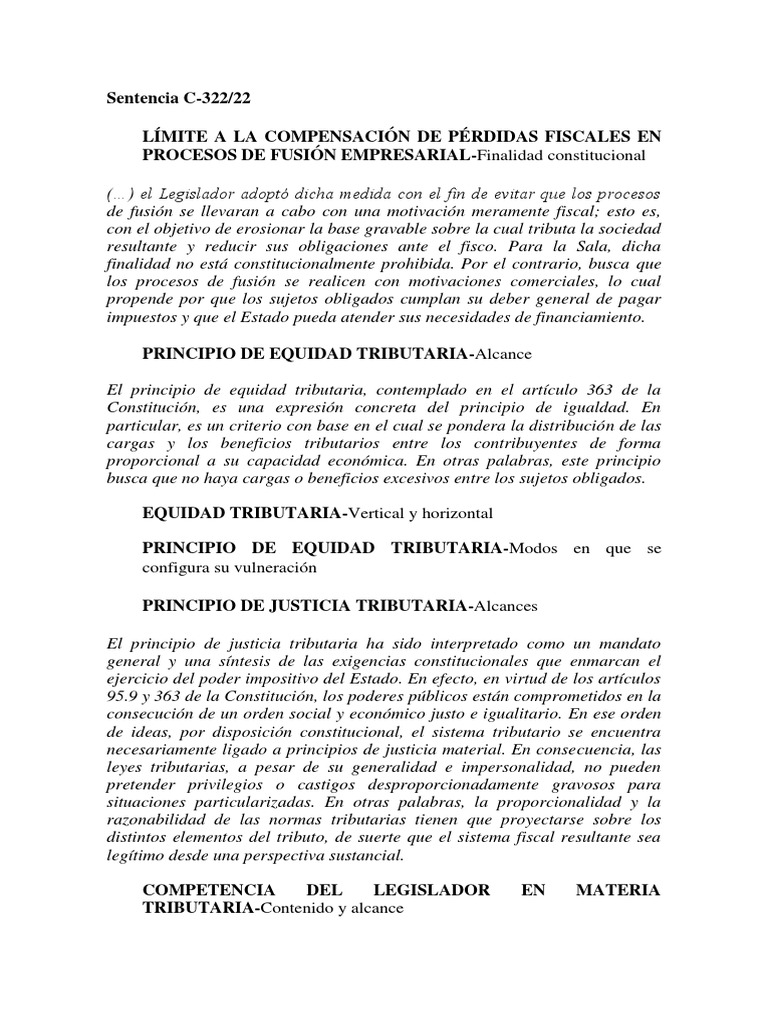 tributario y no afectarían los procesos de fusión, asunto que en todo caso
