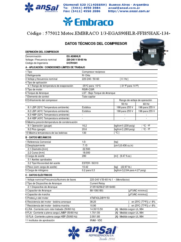 DATOS TÉCNICOS DEL COMPRESOR