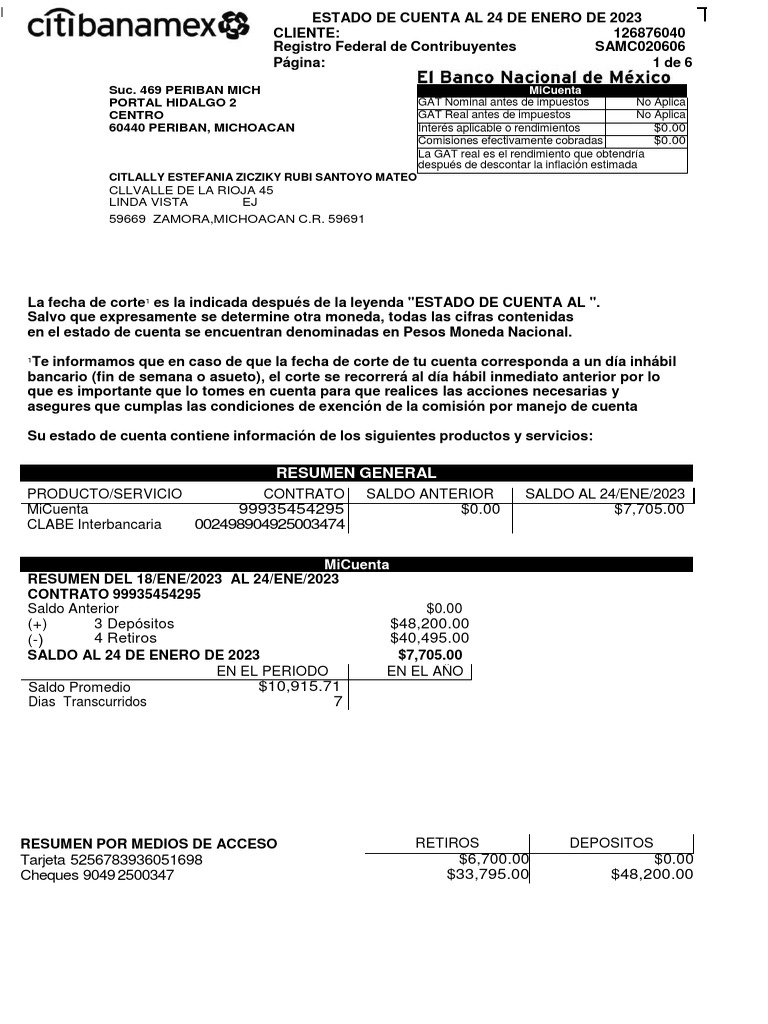 ESTADO DE CUENTA AL 24 DE ENERO DE 2023