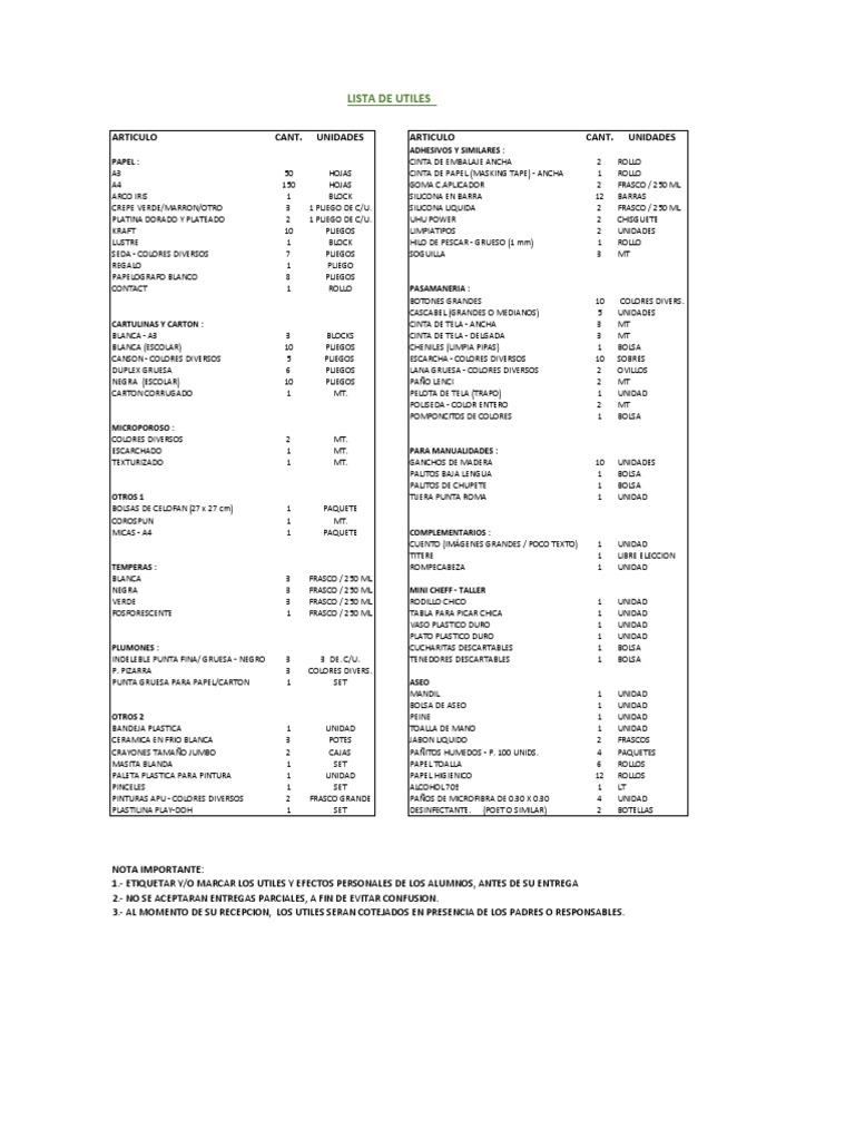 LISTA DE UTILES