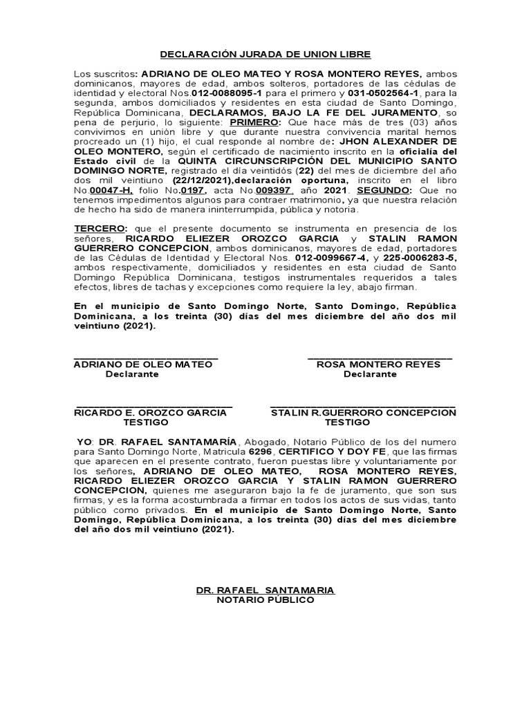 DECLARACIÓN JURADA DE UNION LIBRE