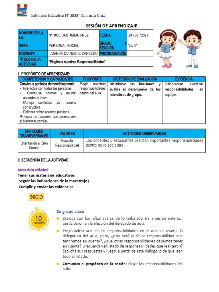 SESIÓN DE APRENDIZAJE