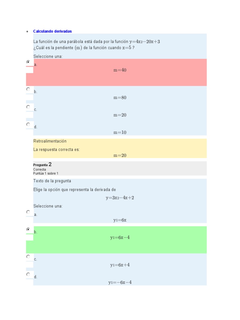 Elige la opción que representa la derivada de