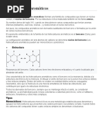 Son aquellos hidrocarburos cíclicos, en cuya estructura existe al menos un anillo bencénico, se clasifican en monocíclicos y policíclicos,