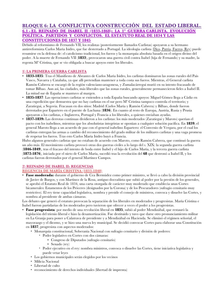 6.1 - EL REINADO DE ISABEL II (1833-1868): LA 1ª GUERRA CARLISTA. EVOLUCIÓN