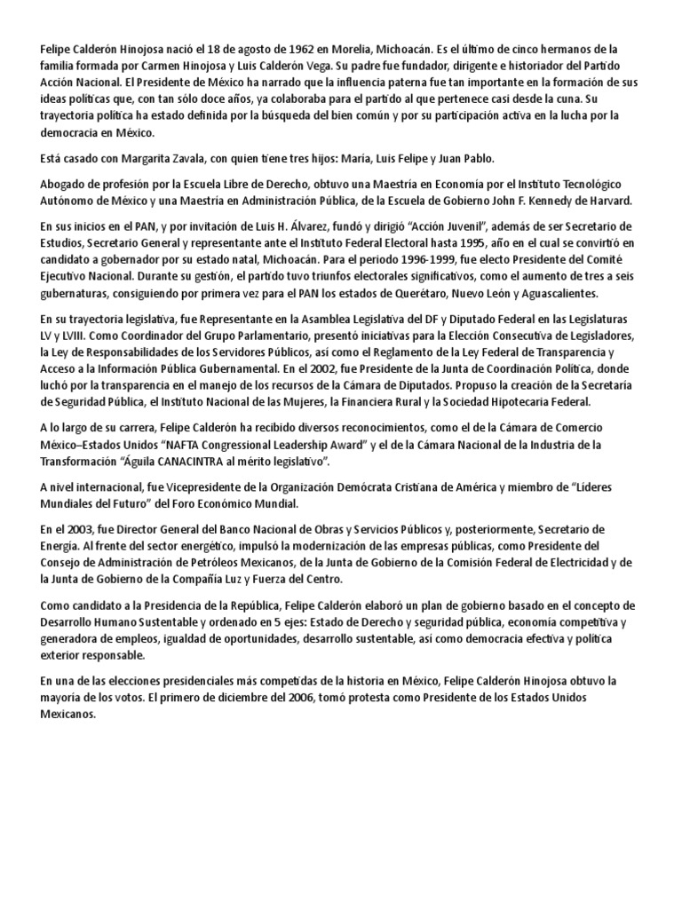 que se desempeñó como presidente de México desde el 1 de diciembre de 2006 hasta el 30 de noviembre de 2012. Fue