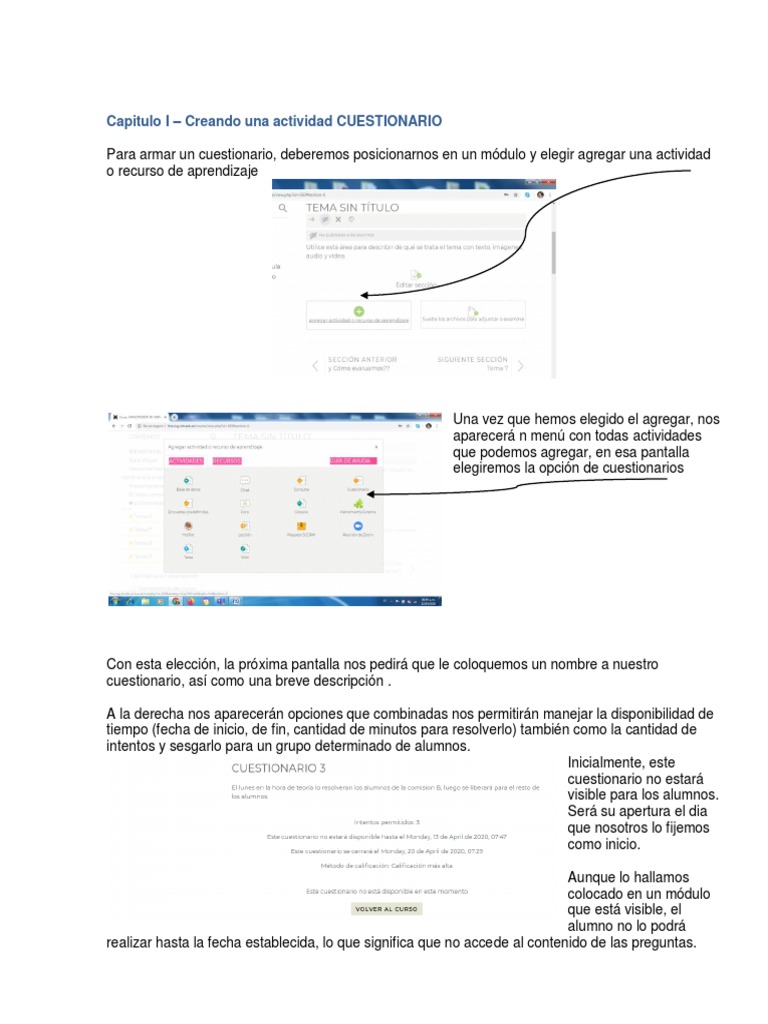 del cuestionario para que el alumno pueda realizarlo, así como la