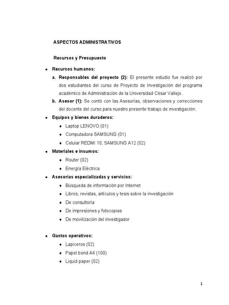 a. Responsables del proyecto (2): El presente estudio fue realizó por