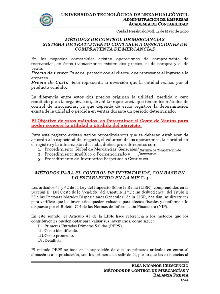 MÉTODOS DE CONTROL DE MERCANCÍAS Y