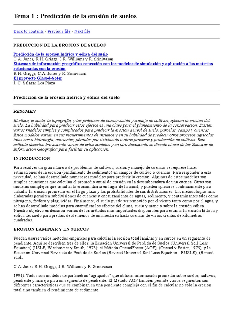 Williams, J.R. y Renard, K.G. 1985. Assessments of soil