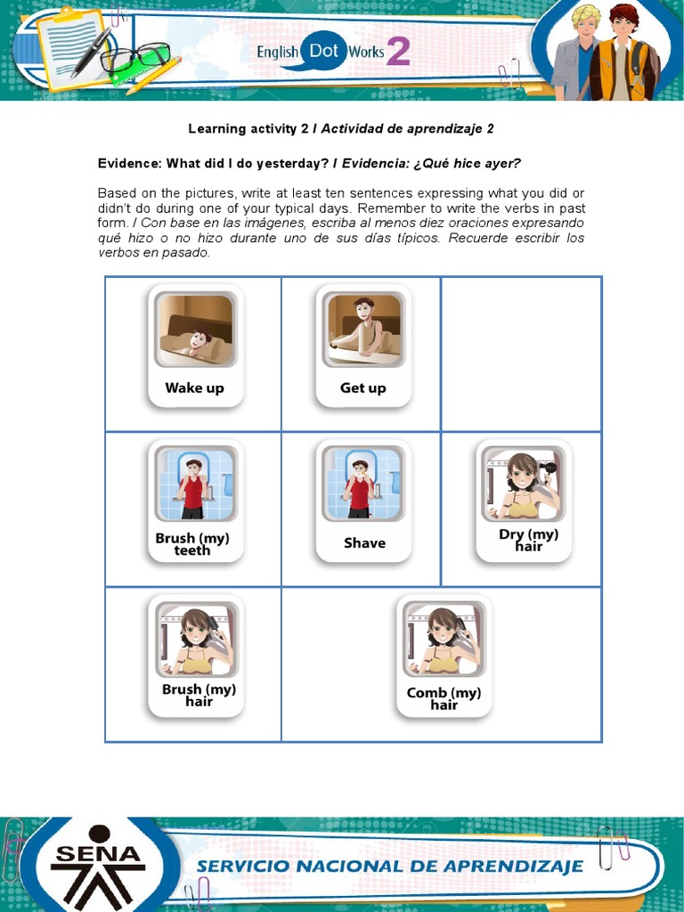 Evidence: What did I do yesterday? / Evidencia: ¿Qué hice ayer?