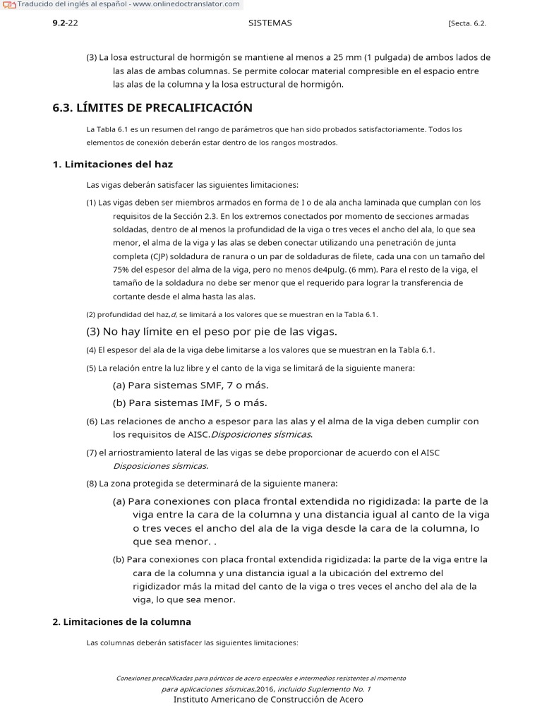 Las conexiones viga-columna deben satisfacer las siguientes limitaciones: