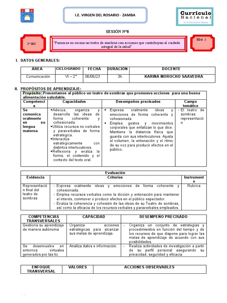 Comunicación VI – 2° 06/06/23 3h KARINA MOROCHO SAAVEDRA