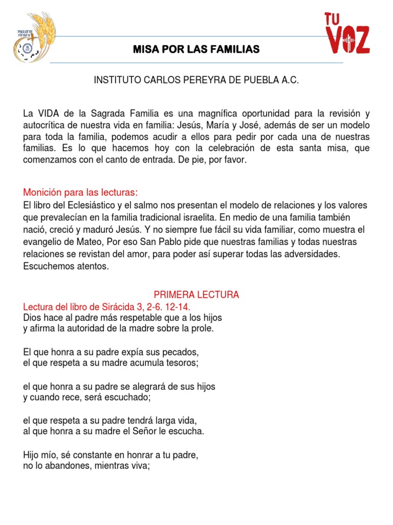 familias. Es lo que hacemos hoy con la celebración de esta santa misa, que