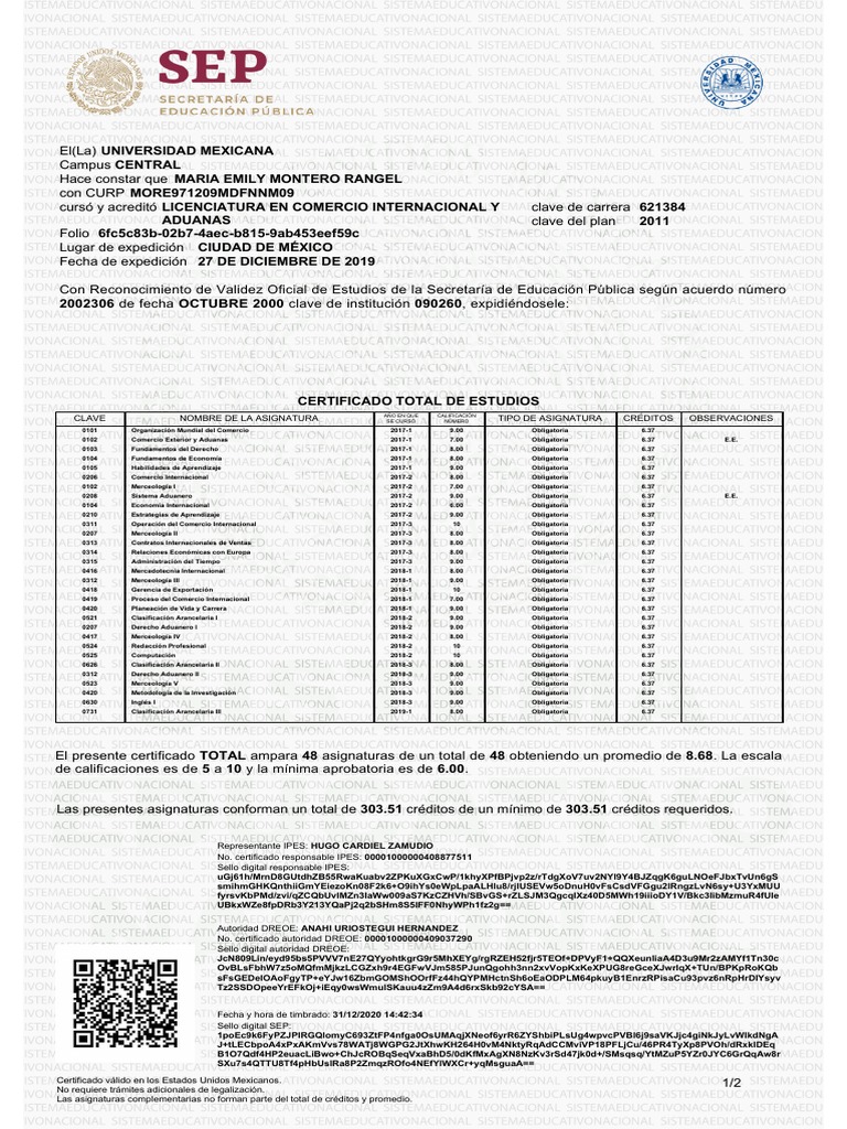 Certificado válido en los Estados Unidos Mexicanos. 1/2