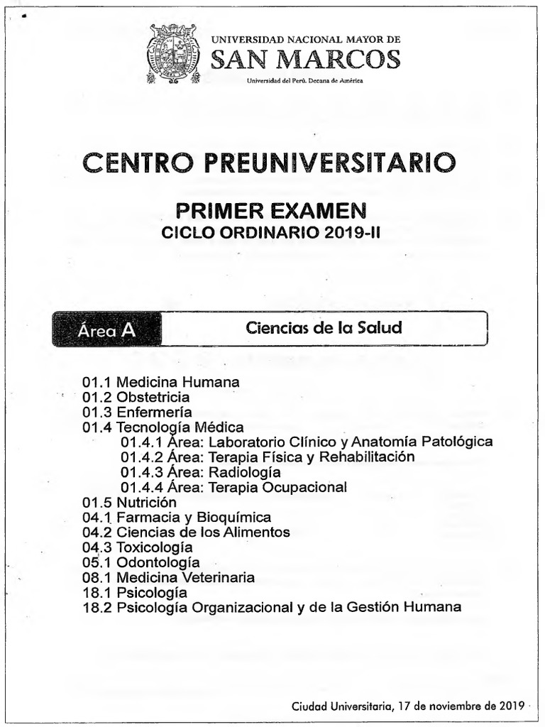 Derechos Reservados. Universidad Nacional Mayor de San Marcos. Oficina Central de Admisión. Av. Germán Amézaga 375, Lima.