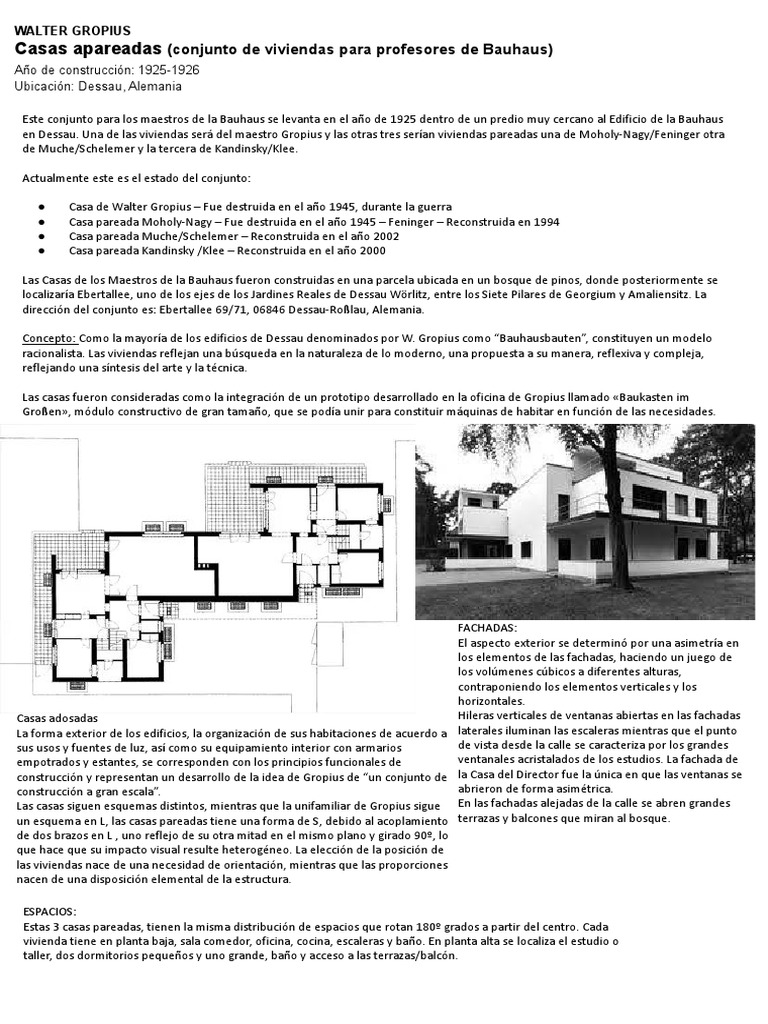 en Dessau. Una de las viviendas será del maestro Gropius y las otras tres serían viviendas pareadas una de Moholy-Nagy/Feninger otra