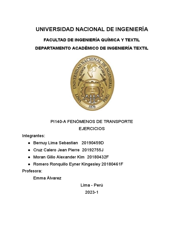 PI140-A FENÓMENOS DE TRANSPORTE
