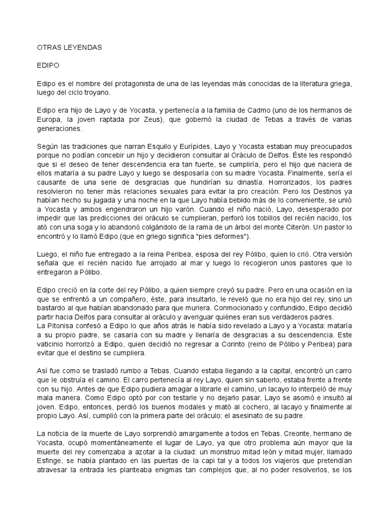 Layo. Se desató, entonces, una feroz discusión y Yocasta, intentando mediar entre Edipo y.
