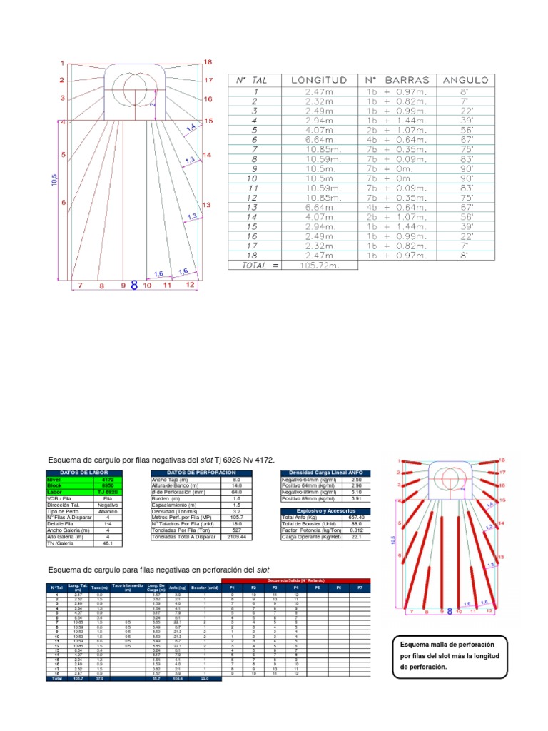 N° Filas A Disparar 4 Metros Perf. por Fila (MP) 105.7 Total Anfo (Kg) 657.40
